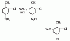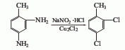 2,4-diaminotoluene is diazotized in the presence of nano2 and hydrochloric acid, and then in cu2 sandmeyer reaction is carried out in the presence of cl2 to obtain 2,4-dichlorotoluene.