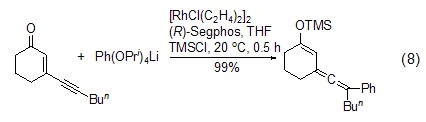 formation of silyl vinyl accumulated dienes under the action of transition metal catalysts, alkenes and alkynes can couple with tmscl to generate accumulated dienes, which can be further oxidized to α, β -unsaturated ketone (formula 8)[17]